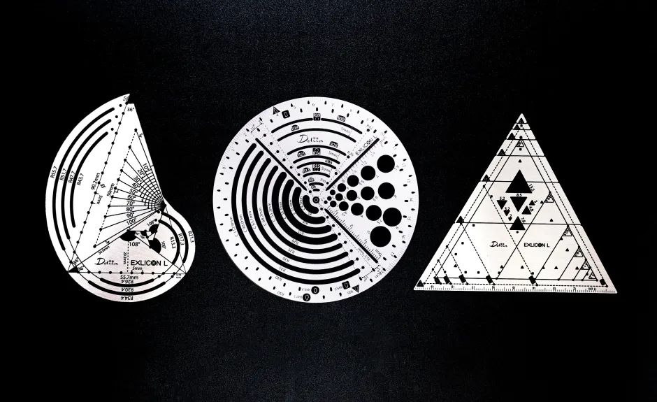 The Tool Set combines the Circle, Triangle, and TG tools to bring precision and golden ratio accuracy to drawing, solving the common issues of freehand sketching. Crafted from durable stainless steel and designed for both beginners and professionals, it supports creativity across culture and disciplines. The Circle Tool enables the drawing of 112 circles ranging from 0.5 to 95mm, with built-in golden ratio guides, grid aids, and measuring rulers. The Tool Set streamlines geometric design with precision and portability.