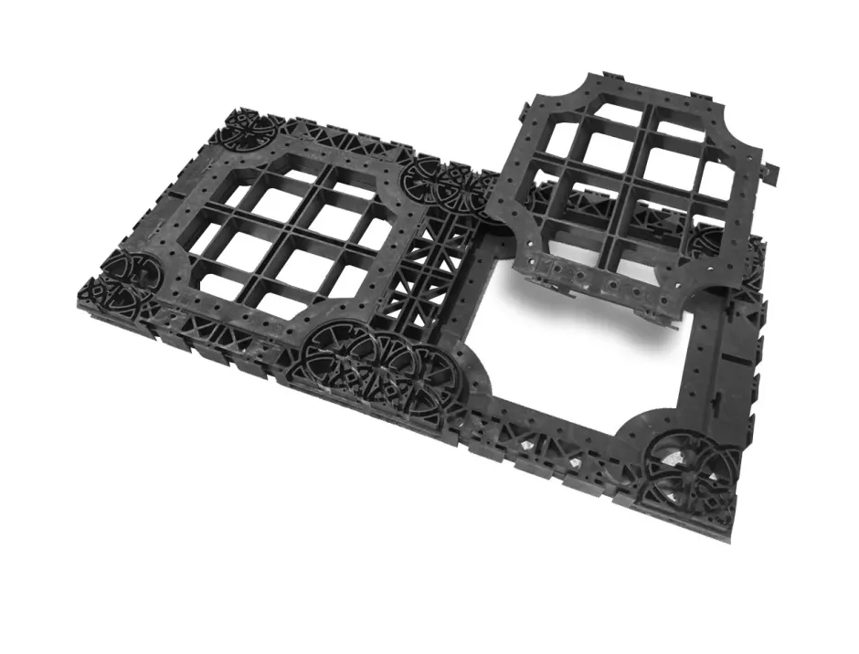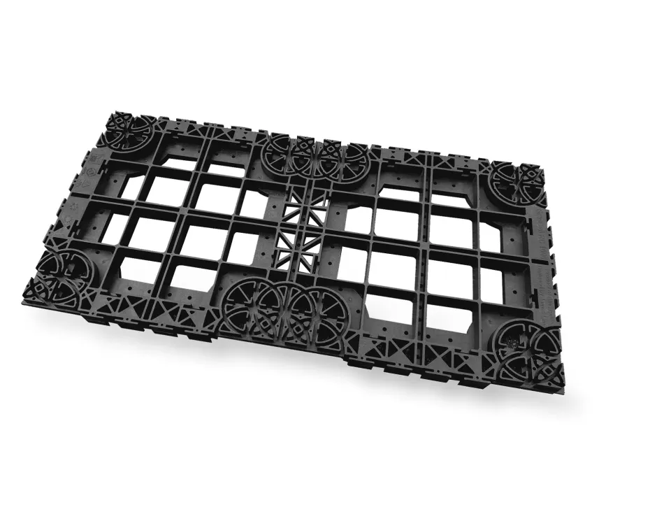 GRASCELL RC1000 is a modular panel made from 100% recycled polypropylene, built for both underground and surface use. It handles stormwater, protects tree roots, and doubles as platform, void fillers, and export pallets. Lightweight and strong, it is easy to install with just a mallet – saving time and labor. Its interlocking design allows custom sizing, while its recyclability supports circular economy.