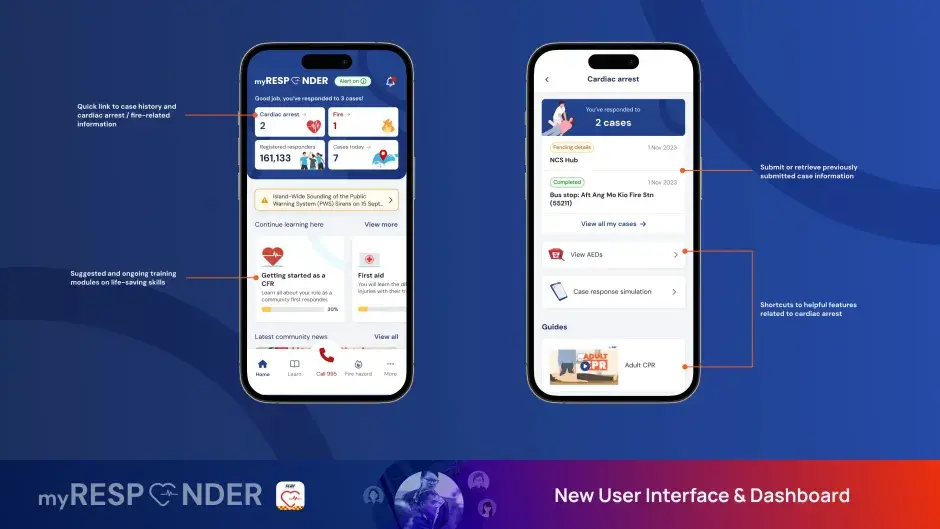 Developed with HTX and NCS, the upgraded myResponder App enables Community First Responders to react swiftly to cardiac arrest and fires with real-time location sharing, guided response, and in-app communication. Beyond emergencies, new peacetime features like e-learning community stories deepen engagement. With over 200,000 users and rising impact, myResponders strengthens Singapore’s resilience – one response at a time.